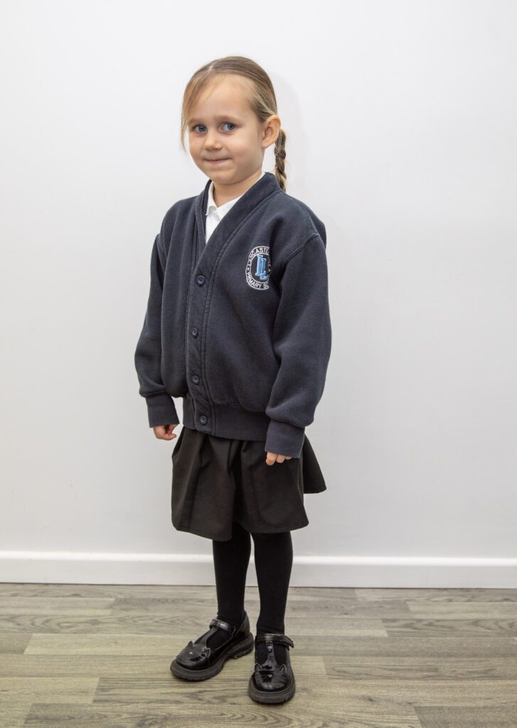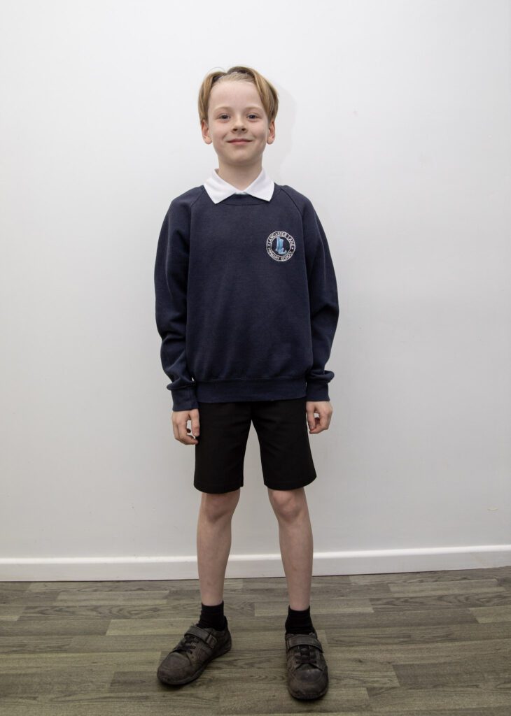 - Navy blue school sweatshirt or cardigan – With or without the school logo.